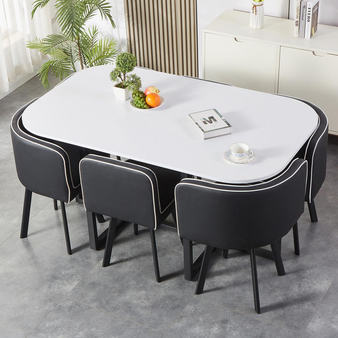 Dale un toque de elegancia y estilo a tu comedor con nuestro Set Comedor Pizza. Este juego incluye una mesa rectangular de color blanco de 150x90x75 cm y seis sillas negras con un diseño clásico que se adaptan perfectamente a cualquier espacio. Su acabado mate le da un toque sofisticado, ideal para disfrutar de comidas familiares o reuniones con amigos. ¡No esperes más para renovar tu comedor!